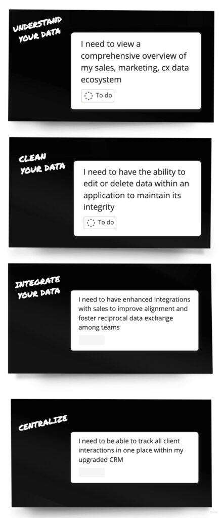 • Understanding the nature of the data every application gathers and its intended interaction with other applications is crucial. Reflect on the possibility of data enhancement within individual applications through synchronization with others.